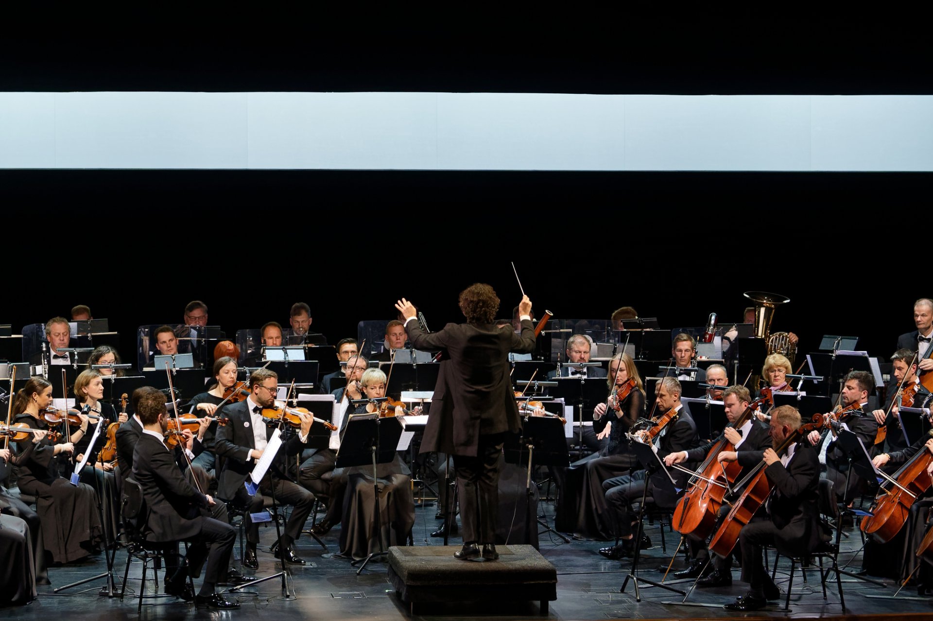 Suprantama, jubiliejinis koncertas „Čiurlionio visata“ negalėjo apsieiti be garsiųjų simfoninių poemų „Miške“ ir „Jūra“, kurias taip pat atliko LNOBT simfoninis orkestras, vadovaujamas vyriausiojo dirigento Ričardo Šumilos.